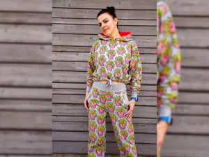 Der einzigartige Griff des Albstoffe Digitaldruck Baumwollsweat-Stoffes in French Terry Qualität wird durch den Einsatz hochwertigster GOTS Bio Garne und einem idealen Stoffgewicht des Druckgrundes erreicht. Der Stoff ist innen nicht angeraut. Kollektion: Classic No. 1 Farbe: mittelgrau meliert - bunt Design: OMG Fries Material: 95% kbA Bio-Baumwolle / 5% Elastan Breite: 160cm  Gewicht: ca. 485g/Laufmeter Waschbar bei 30 Grad...