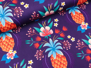 Die einseitig bedruckten Jersey-Stoffe aus der Performance Active Wear Collection!Macht Lust auf Bewegung - Die einzigartige neue Performance Stoffqualität! Durch die speziell entwickelte Fasermischung (40% recyceltes NEW LIFE Polyester aus Plastikflaschen, 40% Trevira Bioactive, sowie 20% Elastan) erhaltet ihr bisher nie dagewesene Eigenschaften in einem Stoff. Design: Pina Colada Muster: Früchte und Blumen Kollektion: Performance Active Wear Farbe: viola -...