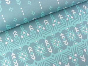 Hochwertiger Hamburger Liebe Bio 3-Farb-Jacquard-Jersey in Nadelzug-Technik aus der "Travel the World" Kollektion. Farbe: celeste - winterweiß - garda Kollektion: Travel the World Muster: Northern Lights Jacquard-Jersey wird aus farbigen Garnengestrickt. Die Nadeln werden entsprechenddes Designs mustergemäß ausgewählt. Die verschiedenfarbigen Maschenreihen ergänzen sich zum Jacquard-Dessin. Dieser hochtechnische Vorgang wird auf unseren 20 Jacquardmaschinen über elektronisch gesteuerte Magnetimpulse durchgeführt. Zur Anwendung...