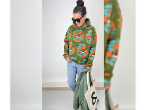 Der einzigartige Griff des Albstoffe Digitaldruck Baumwollsweat-Stoffes in French Terry Qualität wird durch den Einsatz hochwertigster GOTS Bio Garne und einem idealen Stoffgewicht des Druckgrundes erreicht. Der Stoff ist innen nicht angeraut. Entlang einer Webkante verläuft ein bunter Bordürenstreifen. Dieser hat eine Breite von ca. 12cm. Kollektion: Glossy Farbe: olivia - bunt Design: Rose Material: 95% kbA Bio-Baumwolle / 5%...