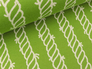 Hochwertiger Hamburger Liebe Bio 2-Farb-Doubleface Jacquard-Jersey in Nadelzug-Technik aus der Ahoy Kollektion von Hamburger Liebe für Albstoffe. Der Stoff ist beidseitig nutzbar. Farbe: olivia - meringa Design: Double Quai Kollektion: Ahoy Jacquard-Jersey wird aus farbigen Garnengestrickt. Die Nadeln werden entsprechenddes Designs mustergemäß ausgewählt. Die verschiedenfarbigen Maschenreihen ergänzen sich zum Jacquard-Dessin. Dieser hochtechnische Vorgang wird auf unseren 20 Jacquardmaschinen über elektronisch...