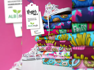 Der einzigartige Griff des Albstoffe Digitaldruck Baumwollsweat-Stoffes in French Terry Qualität wird durch den Einsatz hochwertigster GOTS Bio Garne und einem idealen Stoffgewicht des Druckgrundes erreicht. Der Stoff ist innen nicht angeraut. Kollektion: Classic No. 1 Farbe: meringa - bunt Design: Life is a Pony Farm Material: 95% kbA Bio-Baumwolle / 5% Elastan Breite: 160cm Gewicht: ca. 485g/Laufmeter Waschbar bei...