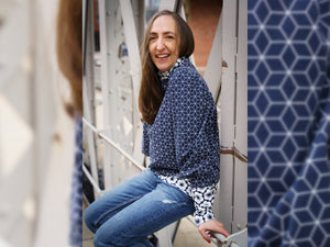 Der einzigartige Griff des Albstoffe Digitaldruck Baumwollsweat-Stoffes in French Terry Qualität wird durch den Einsatz hochwertigster GOTS Bio Garne und einem idealen Stoffgewicht des Druckgrundes erreicht. Der Stoff ist innen nicht angeraut. Entlang einer Webkante verläuft ein bunter Bordürenstreifen. Dieser hat eine Breite von ca. 12,5cm. Kollektion: Sakura Farbe: blue navy - meringa Design: Asanoha Material: 95% kbA Bio-Baumwolle /...