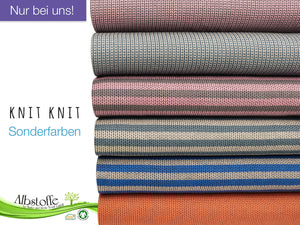 Hochwertiger Bio 3D-Relief-Jacquard-Jersey Knit Knit in der Sonderfarbe rosa- griglio londra von Albstoffe Diese Sonderfarbe wird es nur bei uns zu kaufen geben!!!! Farbe: rosa-griglio londra Design: Knit Knit Stripes Die Streifen haben eine Breite von ca. 1,3cm.Selbst aus kurzer Distanz sieht dieser 3D-Elastic-Jersey aus wie ein Grobstrick-Pullover. In Wirklichkeit ist es aber ein hautsympatisches Singlejersey-Gestrick aus Bio-Baumwolle mit Elastan....