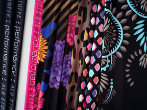 Die einseitig bedruckten Jersey-Stoffe aus der Performance Active Wear Collection!Macht Lust auf Bewegung - Die einzigartige neue Performance Stoffqualität! Durch die speziell entwickelte Fasermischung (40% recyceltes NEW LIFE Polyester aus Plastikflaschen, 40% Trevira Bioactive, sowie 20% Elastan) erhaltet ihr bisher nie dagewesene Eigenschaften in einem Stoff. Design: Pina Colada Muster: Früchte und Blumen Kollektion: Performance Active Wear Farbe: viola -...