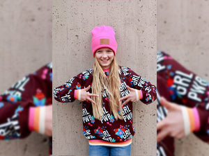 Der einzigartige Griff des Albstoffe Digitaldruck Baumwolljersey-Stoffes wird durch den Einsatz hochwertigster GOTS Bio Garne und einem idealen Stoffgewicht des Druckgrundes erreicht. Entlang einer Webkante verläuft ein bunter Bordürenstreifen. Dieser hat eine Breite von ca. 10cm. Kollektion: Bloom Farbe: bordeaux - bunt Design: Girl Power Material: 95% kbA Bio-Baumwolle / 5% Elastan Breite: 165cm (Extrabreit) Gewicht: ca.365g / Laufmeter Waschbar...