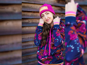 Der einzigartige Griff des Albstoffe Digitaldruck Baumwollsweat-Stoffes in French Terry Qualität wird durch den Einsatz hochwertigster GOTS Bio Garne und einem idealen Stoffgewicht des Druckgrundes erreicht. Der Stoff ist innen nicht angeraut. Entlang einer Webkante verläuft ein bunter Bordürenstreifen. Dieser hat eine Breite von ca. 12cm. Kollektion: Glossy Farbe: blue navy - bunt Design: Rose Material: 95% kbA Bio-Baumwolle /...