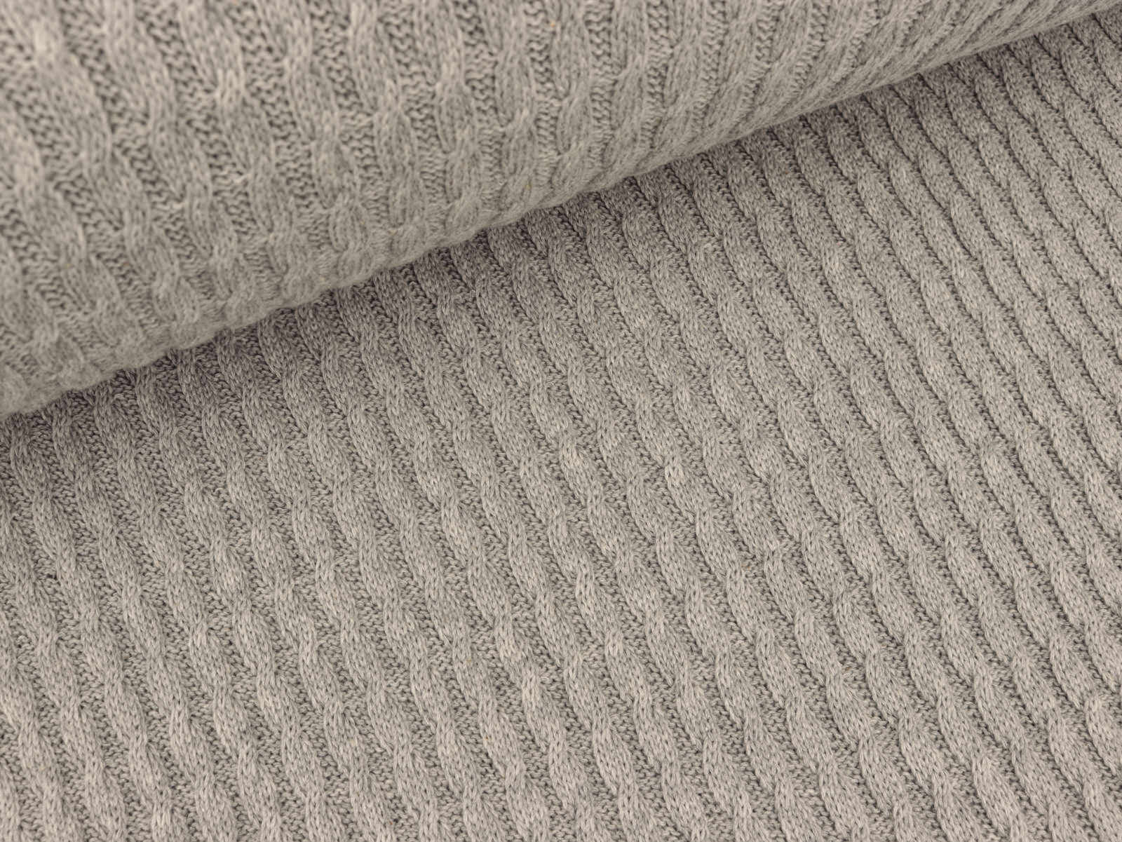Wie selbstgestrickt. Durch das Umhängen von Maschenstäbchen mit gleichzeitigem Versetzen des Nadelbetts entstehen interessante Zopfmuster. Das ganze gestrickt aus GOTS zertifizierter Bio- Baumwolle: Eine neue Innovation von Albstoffe - Endlich gibt es hautsympathische Grobstrickmasche ohne Plastik (Acryl, Polyester) Ein Highlight für kreative Hobbyschneider.