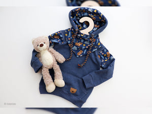 Die neue STEINBECK-Stoffserie „Woody“ bringt das bunte Waldleben in farbenfrohen Stoffen zu Euch in die Nähzimmer.  Muster: Familie Braunbär im Wald Farbe: dunkelblau - bunt Material: 95% Baumwolle / 5%Elastan Breite: 155cm Zertifizierung: Öko-Tex-Standard 100 Gewicht: ca.200g/m² Waschbar bei 30 Grad, bitte keine Waschmittel mit optischem Aufheller verwenden. Wichtig zum Thema Gewerbliche Nutzung Steinbeck-Stoffen:   Designerstoffe von STEINBECK fallen ab...