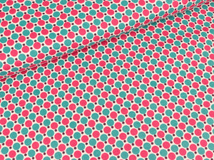 Wunderschöner weicher Baumwollstoff mit Punkten und Pünktchen. Muster: Lespois Farbe: weiß-petrol-fuchsia-beere Material: 100%Baumwolle Breite: 160cm Gewicht: 120g/m² Zertifizierung: Öko-Tex-Standard 100 Waschbar bei 30 Grad.