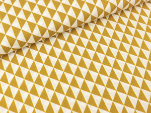 Weiche Baumwoll Webware "Toni" von Swafing Stoffe. Bestens geeignet für Decken, Kissen, Taschen, Beutel, Bienenwachstücher, Kleider, Röcke und vieles mehr. Muster: Dreiecke Farbe: ocker - weiß Material: 100% BaumwolleBreite: 140cm Gewicht: ca. 120g/m² Zertifizierung: Öko-Tex-Standard 100 Waschbar bei 30 Grad. Bitte immer auf Links waschen. Nicht in den Trockner geben und nur von Links bügeln auf Stufe 1.