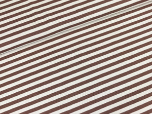 Hochwertiger Baumwolljersey aus der Serie Vicente. Farbe: braun-weiß Streifenbreite: 5mm Material: 95%Baumwolle/5%Elastan Breite: 165cm Weitere Farben findet ihr ebenfalls im Shop.