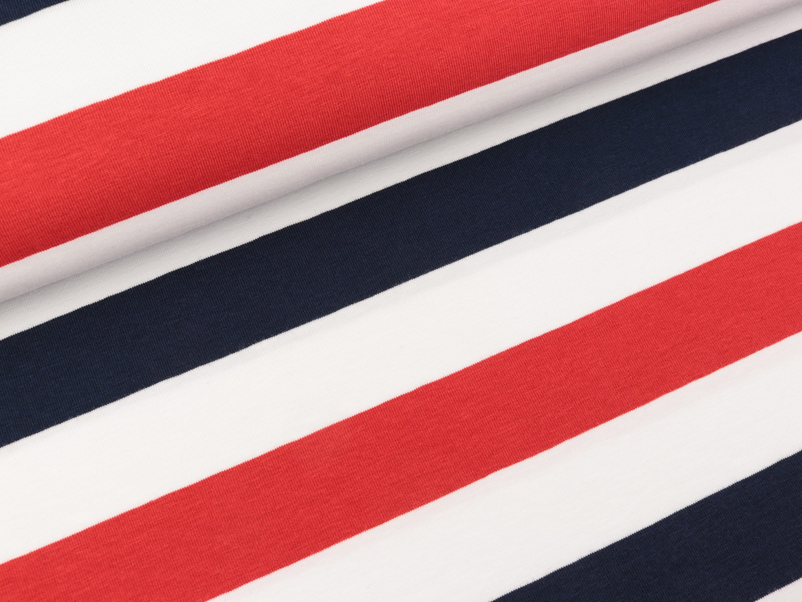 Weicher Baumwolljersey Isa von Swafing Stoffe mit Blockstreifen. Die Streifen sind garngefärbt. Die Streifen haben eine Breite von ca. 1cm. Muster: Streifen Farbe: dunkelblau - hellblau Material: 94% Baumwolle / 6% ElastanBreite: 160cm Gewicht: ca. 220g/m ² Zertifizierung: Öko-Tex-Standard 100 Waschbar bei 30 Grad. Bitte immer auf Links waschen.