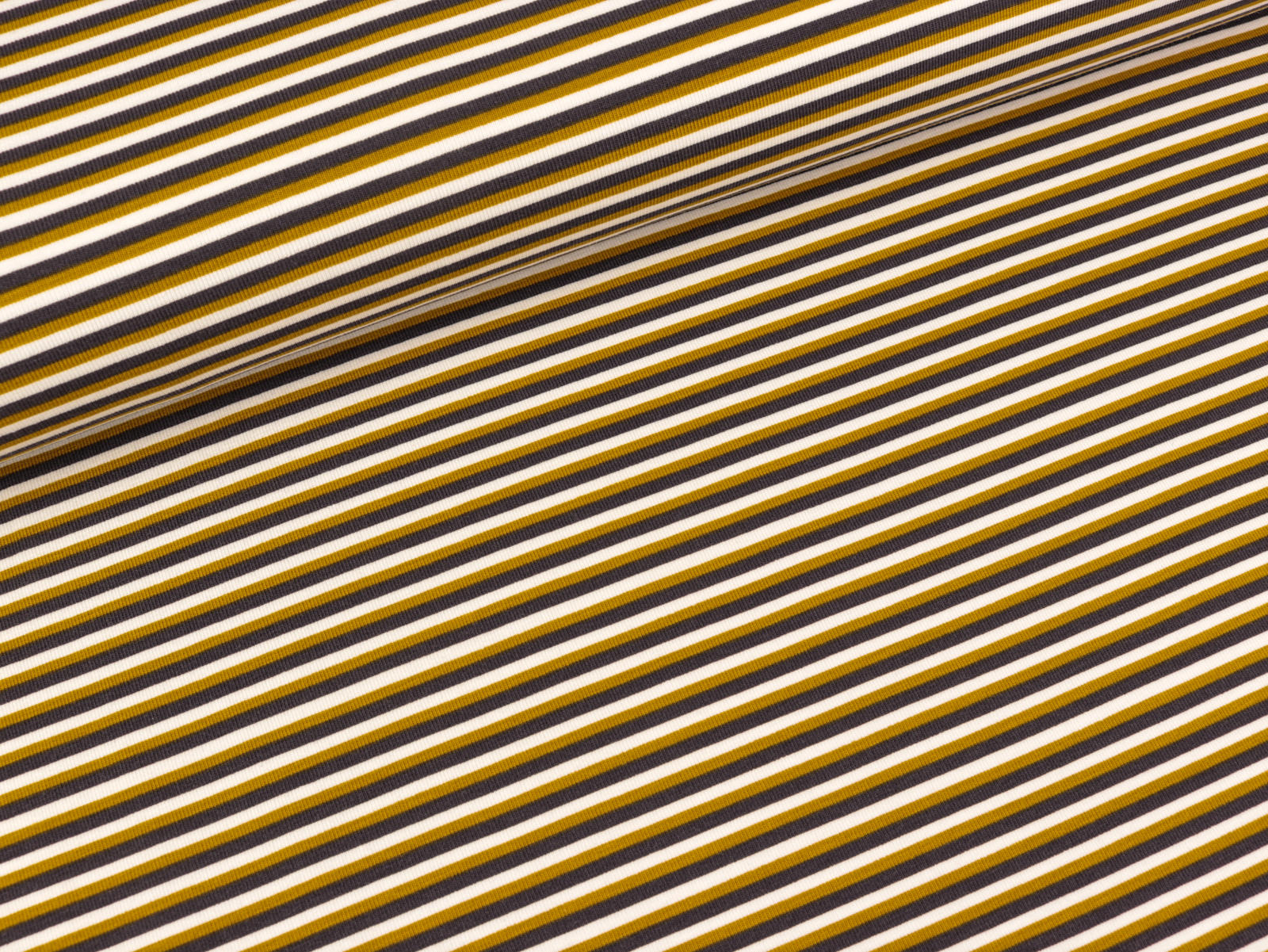 Ein weicher Baumwolljerseystoff bedruckt mit Streifen.