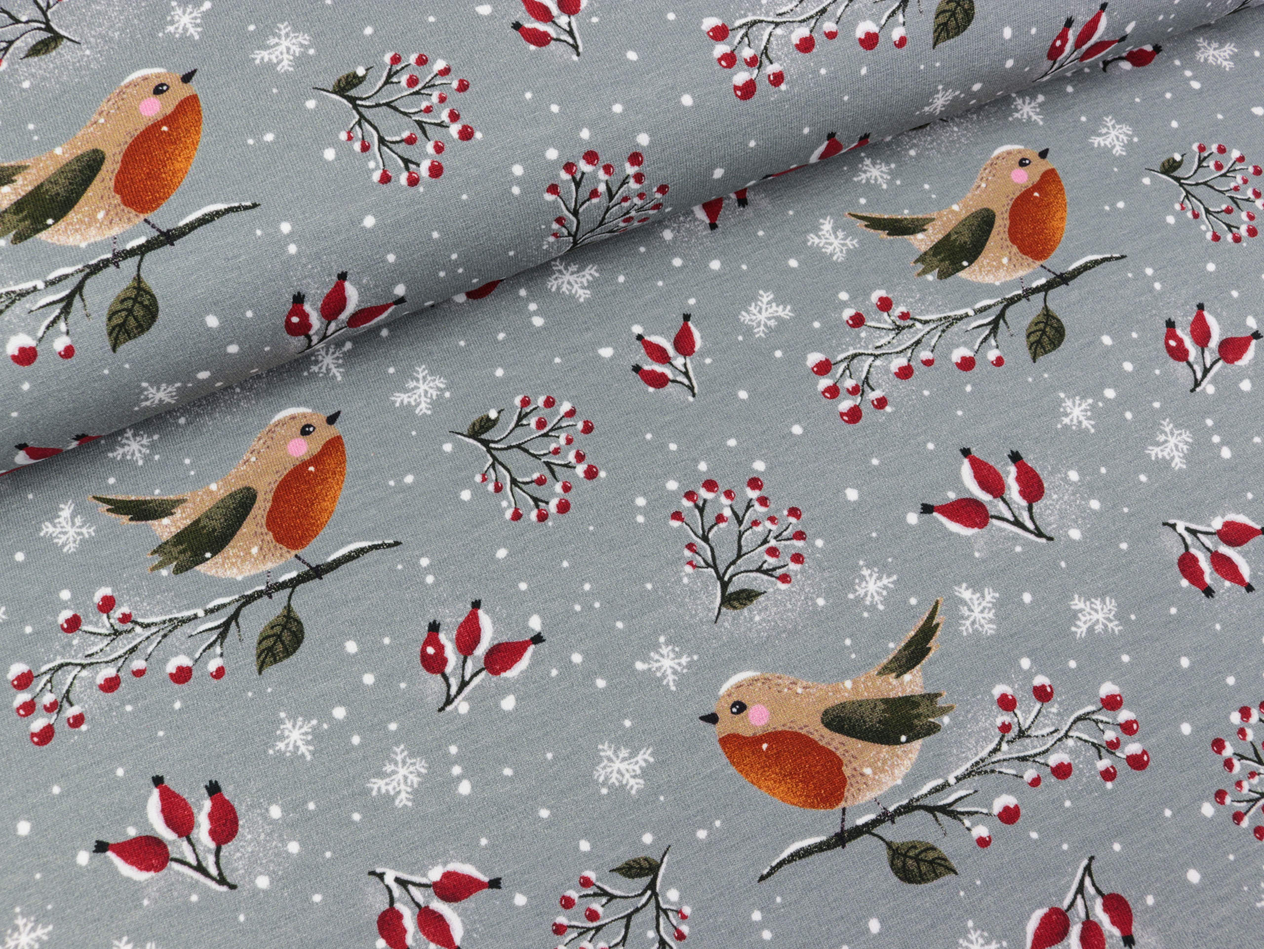Liebt Ihr es auch, im Winter die Vögel im Garten und in der Natur zu beobachten? Sie fliegen umher, suchen nach Futter und es zwitschert hier und dort. Das Rotkehlchen erkennt man leicht, macht es doch mit seiner prächtig rötlichen Brust und seinem lieblichen Anblick auf sich aufmerksam. Auf Lovely Robin hat das Rotkehlchen auf einem Zweig mit roten Beeren und Hagebutten Platz genommen – darüber rieseln einige Schneeflocken.