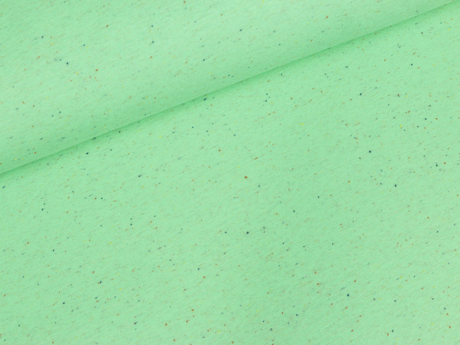 Leichter Baumwollsweat mit bunten Ministreuseln auf mintfarbenem Untergrund.