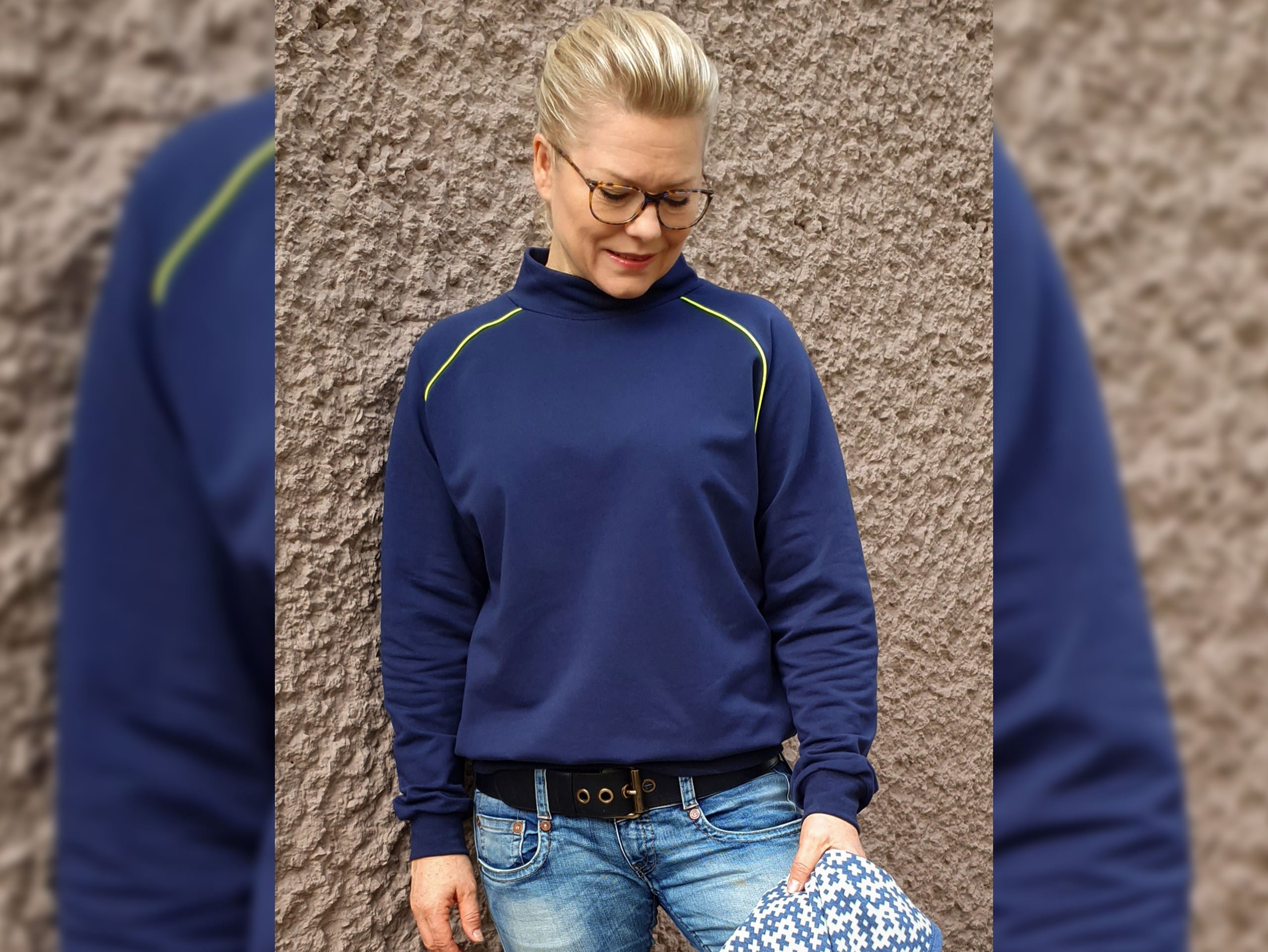 "Cuddle Me" Sweat von Hamburger Liebe für Albstoffe ist ein dehnbarer Bio-Baumwollsweat. Innen ist der Stoff ganz weich angeraut.