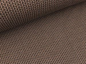 Hochwertiger Hamburger Liebe Bio 3D-Relief-Jacquard-Jersey passend zur Travel the World Kollektion. Farbe: caccia - mokka Design: Big Knit Breite: 135cm Material: 95% kbA Bio-Baumwolle / 5% Elastan Gewicht: 305g / Laufmeter Mehr als doppelt so groß wie der Knit Knit - Ein echtes Highlight. Selbst aus kurzer Distanz sieht dieser 3D-Elastic-Jersey aus wie ein Grobstrick-Pullover. In Wirklichkeit ist es aber...