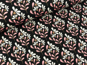 Hochwertiger Hamburger Liebe Bio 3-Farb-Jacquard-Jersey in Nadelzug-Technik aus der Sakura Kollektion. Die Blumen haben einen Durchmesser von ca. 7cm. Farbe: braun - nude - winterweiß Kollektion: Sakura Muster: Yukata Jacquard-Jersey wird aus farbigen Garnengestrickt. Die Nadeln werden entsprechenddes Designs mustergemäß ausgewählt. Die verschiedenfarbigen Maschenreihen ergänzen sich zum Jacquard-Dessin. Dieser hochtechnische Vorgang wird auf unseren 20 Jacquardmaschinen über elektronisch gesteuerte Magnetimpulse...