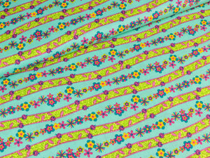 Schöner türkisfarbener Baumwollstoff mit kleinen Streublümchen. Material: 100%Baumwolle Breite: 140cm Waschbar bei 30 Grad.