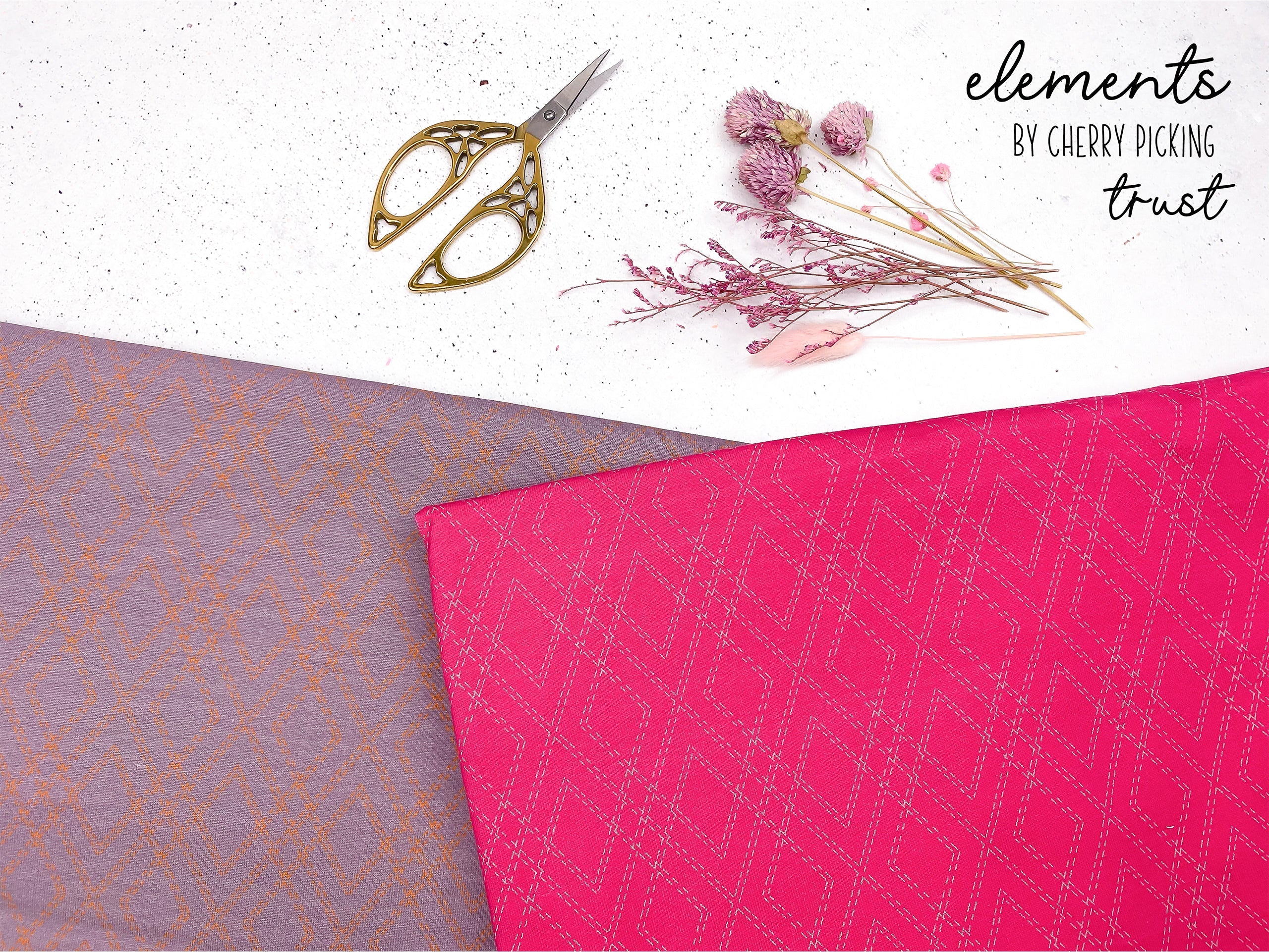 Der Baumwolljersey "Trust" wirkt von weitem ganz dezent, auf den zweiten Blick und wenn man näher kommt, entdeckt man das interessante Muster aus Rauten und Stepplinien. Der Hintergrund wirkt durch die Linienstrukturen leicht meliert! Für sich alleine oder mit den plakativeren Motiven kombiniert wunderschön!