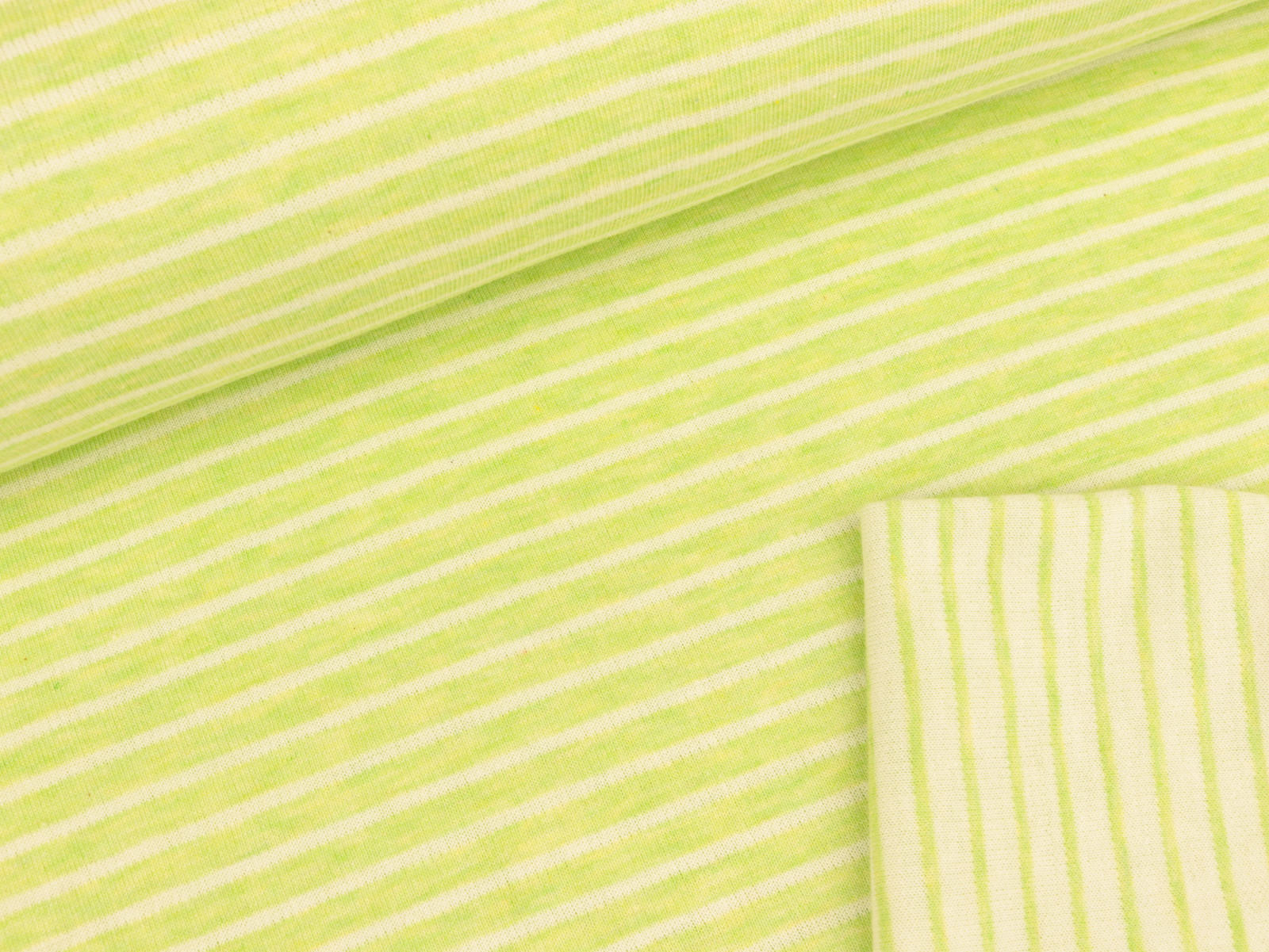 Die schmalen Streifen haben eine Breite von ca. 2,5mm, die breiten Streifen sind 7,5mm breit. Der Stoff kann beidseitig verwendet werden.