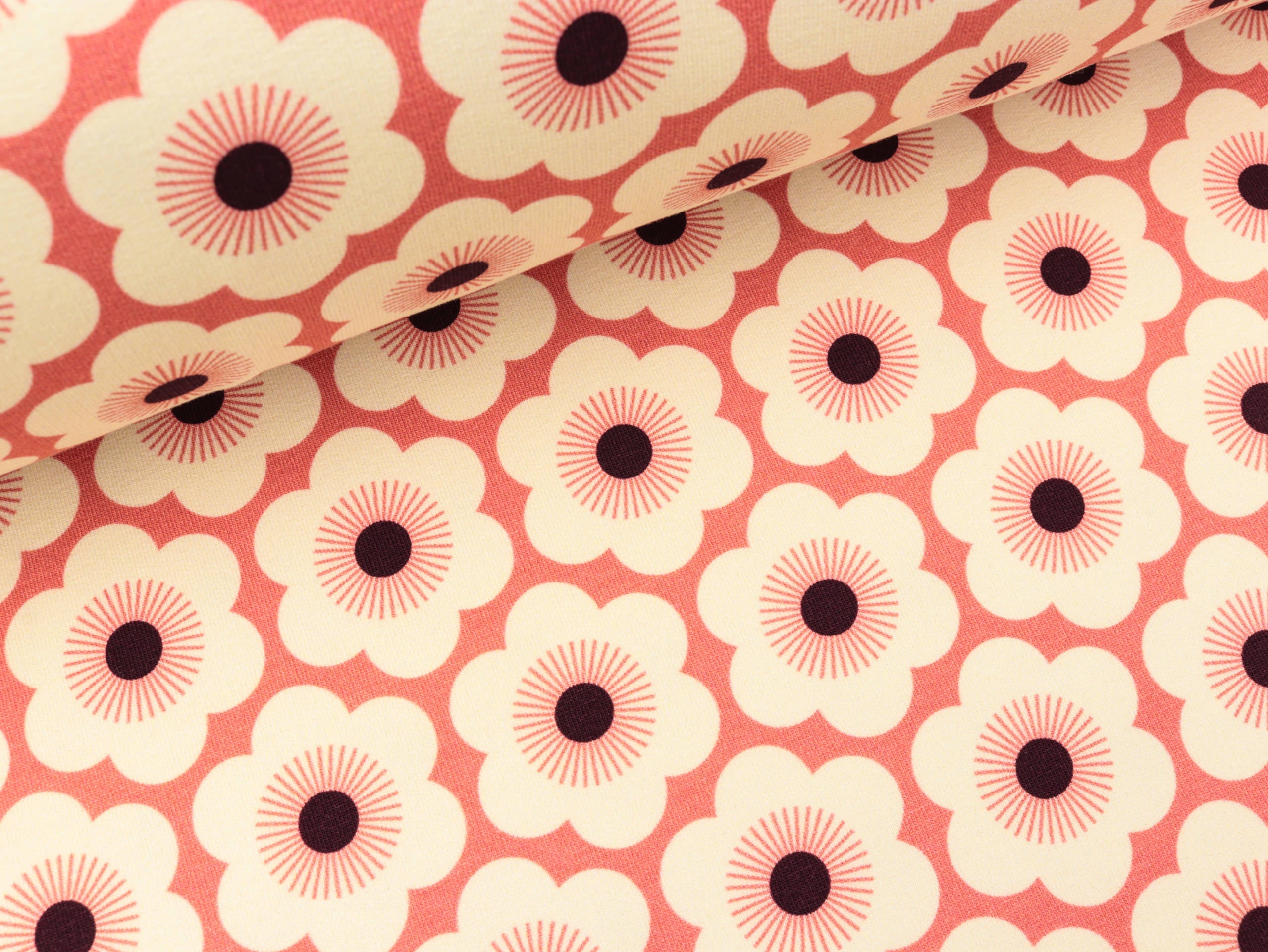 Der einzigartige Griff des Albstoffe Digitaldruck Baumwollsweat-Stoffes in French Terry Qualität wird durch den Einsatz hochwertigster GOTS Bio Garne und einem idealen Stoffgewicht des Druckgrundes erreicht. Der Stoff ist innen nicht angeraut.