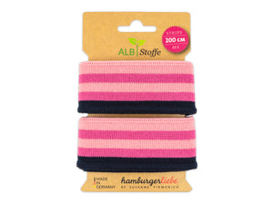 Die Stripe Me Bänder aus der Midnight Kollektion von Albstoffe und Hamburger Liebe. Die Stripe Me Bänder haben eine Länge von 200cm! Durch die Verwendung von hochwertigem Dtex 44 Lycra® Elastan und einer hochtechnischen Ausrüstung werden höchste Qualitätsansprüche erfüllt, so dass ihr lange Freude an eurem Lieblingskleidungsstücken haben werdet. Sie eignen sich hervorragend zum Aufpeppen von T-Shirts, Pullovern, Jacken, Hosen...