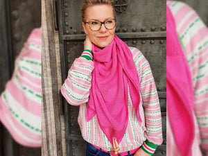 Hochwertiger 3-Farb-Jacquard-Jersey aus der Bloom Kollektion von Hamburger Liebe für Albstoffe. Der Stoff ist innen nicht angeraut und kann sehr gut für sommerliche Kleidung verwendet werden. Muster: Pin Stripes Farbe: rosa scuro - weiß - verde erba Kollektion: Bloom Die schmalen unterbrochenen Streifen haben eine Breite von ca. 0,25cm. Die Streifen verlaufen längs. Material: 100% kbA Bio-Baumwolle Breite: 150cm Gewicht:...