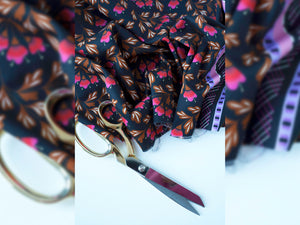 Hochwertiger weicher und leicht fallender New Cotton Baumwollsatin. Der Stoff ist knitterarm und bestens für Blusen, Kleider, Röcke, Hosen, Schals, Tücher und vieles mehr geeignet. Der Stoff ist nicht dehnbar. Entlang einer Webkante verläuft ein bunter Bordürenstreifen. Dieser hat eine Breite von ca. 13cm. Kollektion: BLING BLING Farbe: schwarz - bunt Design: Blue Bell Material: 100% kbA Bio-Baumwolle Breite: 150cm Gewicht:...