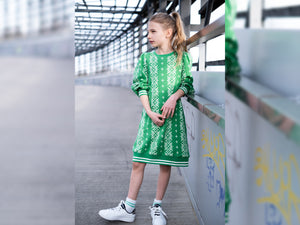 Hochwertiger Hamburger Liebe Bio 3-Farb-Jacquard-Jersey in Nadelzug-Technik aus der "Evermore" Kollektion. Farbe: verde erba - lattuga - winterweiß Kollektion: Evermore Muster: Florish Jacquard-Jersey wird aus farbigen Garnengestrickt. Die Nadeln werden entsprechenddes Designs mustergemäß ausgewählt. Die verschiedenfarbigen Maschenreihen ergänzen sich zum Jacquard-Dessin. Dieser hochtechnische Vorgang wird auf unseren 20 Jacquardmaschinen über elektronisch gesteuerte Magnetimpulse durchgeführt. Zur Anwendung dieser aufwändigen Technik wird...
