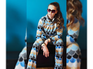 Hochwertiger Hamburger Liebe Bio 7-Farb-Jacquard-Jersey in Nadelzug-Technik aus der Glossy Kollektion. Farbe: bluette - schwarz - carbon - meringa - azzuro - curry - gold Kollektion: Glossy Muster: Shingles Jacquard-Jersey wird aus farbigen Garnengestrickt. Die Nadeln werden entsprechenddes Designs mustergemäß ausgewählt. Die verschiedenfarbigen Maschenreihen ergänzen sich zum Jacquard-Dessin. Dieser hochtechnische Vorgang wird auf unseren 20 Jacquardmaschinen über elektronisch gesteuerte Magnetimpulse...