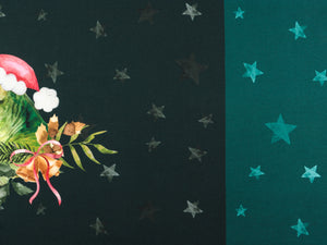 Wunderschönes digital bedrucktes Panel mit einem weihnachtlichen Motiv. Das Panel ist in der Breite 2 farbig geteilt. Das Motiv hat eine Höhe von ca. 21,5cm. Lieferumfang: 1 Panel mit 80cm Länge Muster: Christmas Dinosaurier Farbe: dunkles petrol - petrol - bunt Material: 95% Baumwolle / 5% ElastanBreite: 145cm Gewicht: 200g/m² Zertifizierung: Öko-Tex-Standard 100 Waschbar bei 30 Grad auf Links, bitte keine...