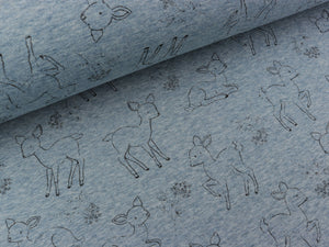 Wundervoller weicher Happy Fleece. Perfekt für Hoodies, Hosen, Decken, Jacken, Schals, Mützen und vieles mehr. Außen wie ein normaler Sweatshirtstoff, innen ist ein kuschelweicher Kurzflorplüsch in schwarz. Das sitzende Reh ist ca. 5cm hoch. Muster: Kleine Rehe Farbe außen: schwarz - dusty blue Farbe innen: dusty blue uni Material: 60% Baumwolle / 40% Polyester Breite: 145cm Gewicht: ca. 330g/m² Waschbar...