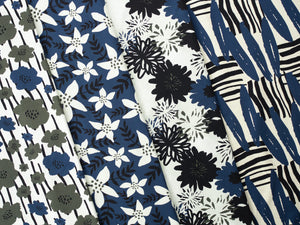Weicher elastischer Baumwolljersey aus der Serie "Johanna" von Swafing Stoffe. Super geeignet für Shirts, Kleider, Röcke, Pullis und vieles mehr. Der Stoff ist sehr gut dehnbar. Muster: Blumen und Streifen Farbe: khaki - jeansblau - schwarz - weiß Material: 90% Baumwolle / 10% Elastan Breite: 155cm Gewicht: 230g/m² Zertifizierung: Öko-Tex-Standard 100 Waschbar bei 30 Grad, bitte keine Waschmittel mit optischem...