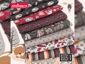 Die neue STEINBECK-Stoffserie „Woody“ bringt das bunte Waldleben in farbenfrohen Stoffen zu Euch in die Nähzimmer. Muster: Pilze, Eicheln und Beeren Farbe: creme - bunt Material: 95% Baumwolle / 5%Elastan Breite: 155cm Zertifizierung: Öko-Tex-Standard 100 Gewicht: ca.200g/m² Waschbar bei 30 Grad, bitte keine Waschmittel mit optischem Aufheller verwenden. Wichtig zum Thema Gewerbliche Nutzung Steinbeck-Stoffen: Designerstoffe von STEINBECK fallen ab...