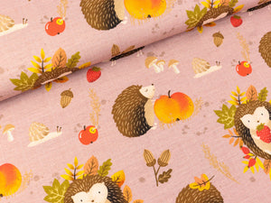 Die neue Stoffserie „Igel Iggi“ von Christiane Zielinski für Swafing Stoffe bringt das bunte Waldleben in farbenfrohen Stoffen mit schraffierten Hintergrund zu Euch in die Nähzimmer. Der Igel mit dem Apfel ist ca. 5,8cm hoch und 9cm breit. Kollektion: Igel Iggi Muster: Igelleben Farbe: altrosa - bunt Material: 95% Baumwolle / 5%Elastan Breite: 160cm Zertifizierung: Öko-Tex-Standard 100 Gewicht: ca.200g/m² Waschbar...