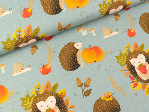 Die neue Stoffserie „Igel Iggi“ von Christiane Zielinski für Swafing Stoffe bringt das bunte Waldleben in farbenfrohen Stoffen mit schraffierten Hintergrund zu Euch in die Nähzimmer. Kollektion: Igel Iggi Muster: Herbstgeflüster Farbe: nebelblau - bunt Material: 95% Baumwolle / 5%Elastan Breite: 160cm Zertifizierung: Öko-Tex-Standard 100 Gewicht: ca.200g/m² Waschbar bei 30 Grad auf Links, bitte keine Waschmittel mit optischem Aufheller verwenden....