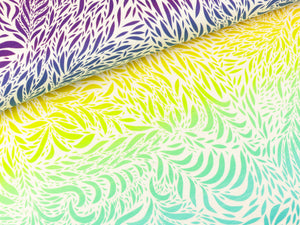 Baumwolljersey Kollektion "Breeze" von Bienvendio Colorido für Swafing Stoffe. Das fortlaufende Design mit den großen Farbverläufen wirkt in den Farben wunderschön und man kann wunderbar mit der Anordnung spielen, je nachdem welche Farbe man im Fokus haben möchte. Breeze ist kein Panel, sondern ein fortlaufendes Muster ohne Unterteilungen. Man muss keine Schnittlinien oder Maße beachten. Die Farbfolge wiederholt sich ca....