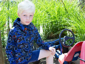 Für Autofreaks haben wir auch den richtigen Stoff: Riesige Monstertrucks brettern über French Terry "Petra" von Swafing Stoffe. Der Stoff ist innen nicht angeraut. Die Trucks sind ca. 13cm lang und 6,7cm hoch. Muster: Monstertrucks Farbe: blau - bunt Material: 95% Baumwolle / 5% ElastanBreite: 160cm Gewicht: 245g/m² Zertifizierung: Öko-Tex-Standard 100 Waschbar bei 30 Grad. Bitte immer auf Links waschen....