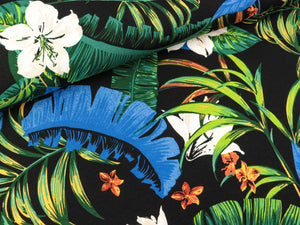 Weich fallender Viskosejersey "Selina" aus der Frühjahr-/Sommerkollektion 2022 von Swafing Stoffe. Für luftige Shirts, Kleider, Leggings und vieles mehr. Muster: Tropical Flowers Farbe: schwarz - bunt Material: 94% Viskose / 6% Elastan Breite: 160cm Zertifizierung: Öko-Tex-Standard 100 Gewicht: 220 g/m² Waschbar bei 30 Grad auf Links, bitte keine Waschmittel mit optischem Aufheller verwenden. Nicht in den Trockner geben.