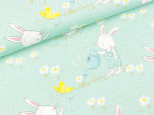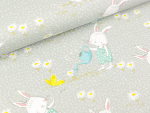 Die neue Baumwolljersey Stoffe "Moppi Rabbit“ von Christiane Zielinski für Swafing Stoffe bringen farbenfrohen Stoffen zu Euch in die Nähzimmer. Wer hat Sehnsucht nach dem Frühling? So geht es auch dem kleinen Hasen Moppi Rabbit! Moppi freut sich auf den Frühling, die Sonne und die wärmeren Tage! Das Hauptmotiv ist ein süßer weißer Hase, der eine Latzhose trägt, über die...