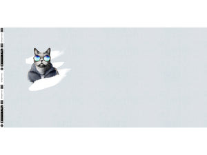 Gestiefelter Kater war gestern! Unsere „Sporty Cat“ mit der verspiegelten Sonnenbrille und Lederjacke und passenden Trendsneakern ist die coolste Katze der Stadt. Ein Sommermotiv mit kleinem Augenzwinkern für deinen Sommer-Casuallook! Das eigentliche Katzenmotiv ist ca. 25 cm hoch und befindet sich auf der linken Seite des Panels. Hellblauer French Terry mit smaragdgrüner Textur, die sich über die gesamte Stoffbreite erstreckt....