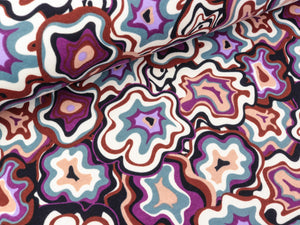 Weicher und sehr angenehm zu tragender Romanit Jersey mit einem großen einseitig bedruckten Blumenmuster.. Der Stoff ist querelastisch. Farbe außen: purple - bunt - schwarz Farbe innen: schwarz uni Muster: Flowers Material: 55% Polyester / 45% Viskose Breite: 150cm Gewicht: 240g/m² Waschbar bei 30 Grad, bügeln Stufe 1. Bitte nicht in den Trockner geben.