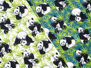 Wunderschöner weicher French Terry, bedruckt mit einem Muster. Der Stoff ist innen nicht angeraut. Muster: Pandabären Farbe: petrol - bunt Material: 95% Baumwolle / 5% ElastanBreite: 160cm Gewicht: 245g/m² Zertifizierung: Öko-Tex-Standard 100 Waschbar bei 30 Grad. Bitte immer auf Links waschen. Nicht in den Trockner geben und nur von Links bügeln auf Stufe 1.