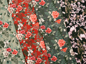 Weicher elastischer Baumwolljersey aus der Serie "Henry" von Swafing Stoffe. Super geeignet für Shirts, Kleider, Röcke, Pullis und vieles mehr. Der Stoff ist sehr gut dehnbar. Muster: Rosensräuße Farbe: staubgrün - bunt Material: 95% Baumwolle / 5% Elastan Breite: 150cm Gewicht: 200g/m² Zertifizierung: Öko-Tex-Standard 100 Waschbar bei 30 Grad, bitte keine Waschmittel mit optischem Aufheller verwenden.