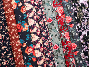 Weicher elastischer Baumwolljersey aus der Serie "Henry" von Swafing Stoffe. Super geeignet für Shirts, Kleider, Röcke, Pullis und vieles mehr. Der Stoff ist sehr gut dehnbar. Muster: Rosensräuße Farbe: burgundy - bunt Material: 95% Baumwolle / 5% Elastan Breite: 150cm Gewicht: 200g/m² Zertifizierung: Öko-Tex-Standard 100 Waschbar bei 30 Grad, bitte keine Waschmittel mit optischem Aufheller verwenden.