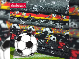 Anstoß! 2021 ist wieder DAS Fußballjahr. Alle großen und kleinen Fans fiebern bei der EM mit. Der perfekte Moment für individuelle Fan Outfits. Perfekt für Shirts und Longsleeves geeignet! Vom kleinen Kicker bis hin zum coolen Teenager oder erwachsenen Fußball-Fan – die Designs gefallen einfach allen Fußballfans! Die Streifen haben eine Breite von ca. 1,2cm. Kollektion: Steinbeck Let's Play Muster:...