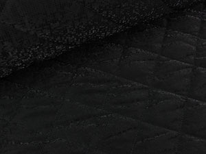 Wundervoller weicher Steppstoff "Quilt Franca" für Jacken, Mäntel, Taschen und Westen. Die Außenseite hat eine changierende Oberfläche. Die Außenseite hat ein leicht erhabenes Rautenmuster, dadurch wird ein toller 3D Effekt erzielt. Die Innenseite ist unifarben schwarz. Der Stoff muss nicht abgefüttert werden. Der Stoff ist nicht dehnbar. Die Rauten sind ca. 6cm hoch. Muster: Rauten Farbe außen: schwarz changierend Farbe...