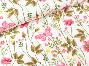Weicher Baumwolljersey aus der Serie "Vintage Botanical" von Swafing Stoffe. Die Stoffe haben eine glatte Oberfläche und eignen sich bestens für Shirt's, Kleider, Röcke, Leggings, Short's und vieles mehr. Kollektion: Vintage Botanical Muster: Bunte Sommerwiese Farbe: weiß - bunt Material: 90% Baumwolle / 10% ElastanBreite: 155cm Gewicht: 230g/m² Zertifizierung: Öko-Tex-Standard 100 Waschbar bei 30 Grad. Bitte immer auf Links waschen.